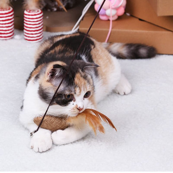The wooden fishing rod is the ideal toy for sharing a moment of play and tender complicity with your domestic cat.