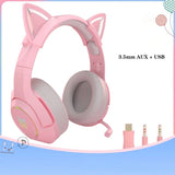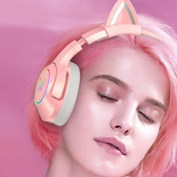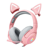Charming kawaii effect pink cat look microphone headset with gorgeous, detachable pink feline ears, a charming and cute design that should appeal to girls and gaming queens alike.