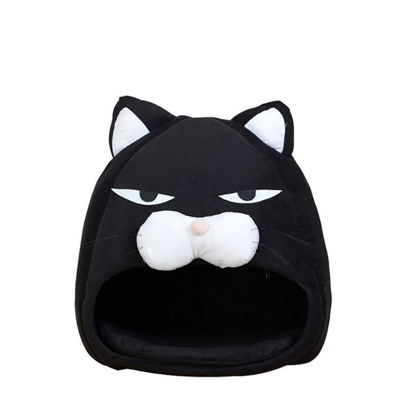 Give your cat this cozy niche in the shape of a really funny angry cat!
