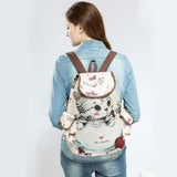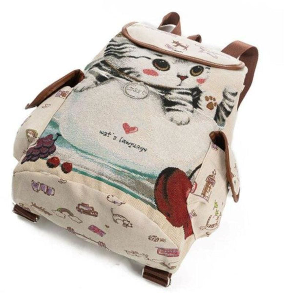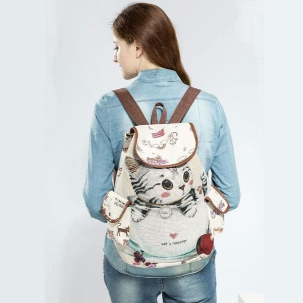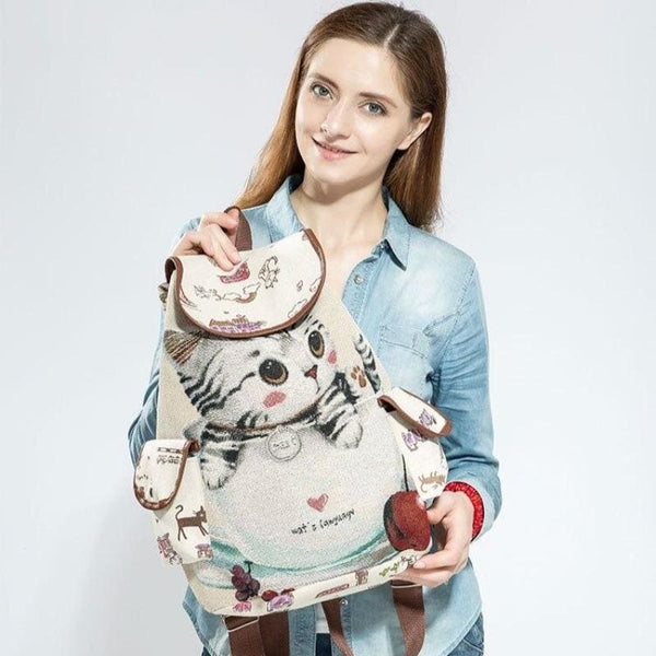 This backpack is made of cute cat print canvas.