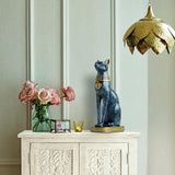 This Egyptian statue made of resin and painted by hand adopts a Modern-vintage Feline style