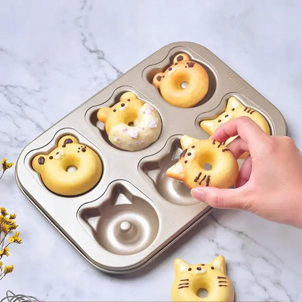 Ce Moule Mini Donuts propose 6 empreintes en forme de têtes de chats adorables. Grâce à sa matière souple et résistante à la chaleur, vous obtenez une cuisson homogène et un démoulage facile. Idéal pour des donuts maison kawaii, personnalisables à souhait avec des glaçages, vermicelles ou pâte à sucre.