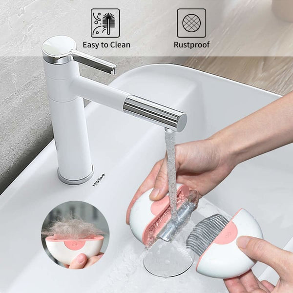 The 2 in 1 cat comb is made of silicone and stainless steel, extremely soft and comfortable for pet's skin and will not hurt pet when cleaning and brushing.