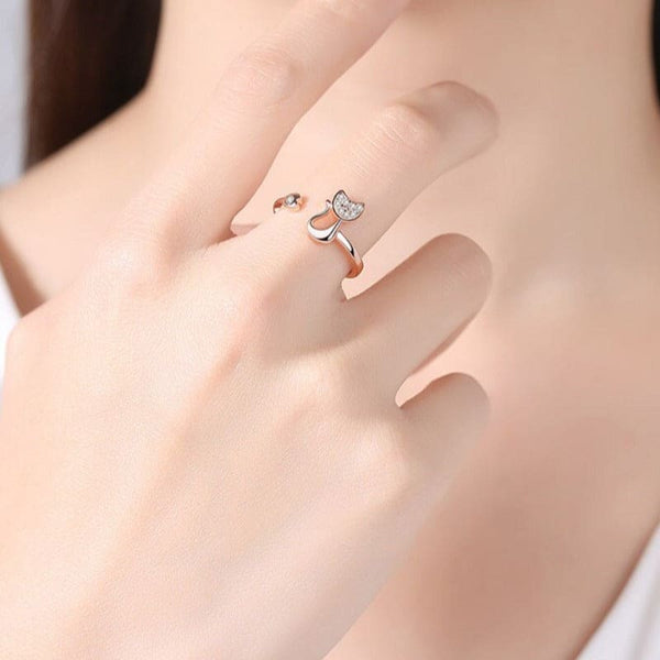 Déjate seducir por este modelo de anillo ajustable con forma de gato con efecto diamante y un brillo deslumbrante para completar tu look en cualquier circunstancia.