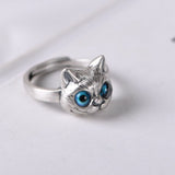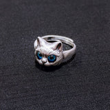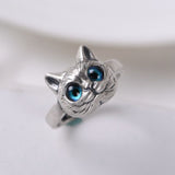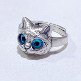 Realza tu mano con este anillo con cabeza de gato de ojos azules con un diseño único y detallado.