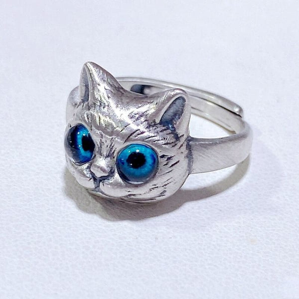 Anillo con cabeza de gato de ojos azules BLUEKAT™