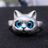 Bague tête de chat aux yeux bleus BLUEKAT™ bague argent chat, bleus, bagues, bagues