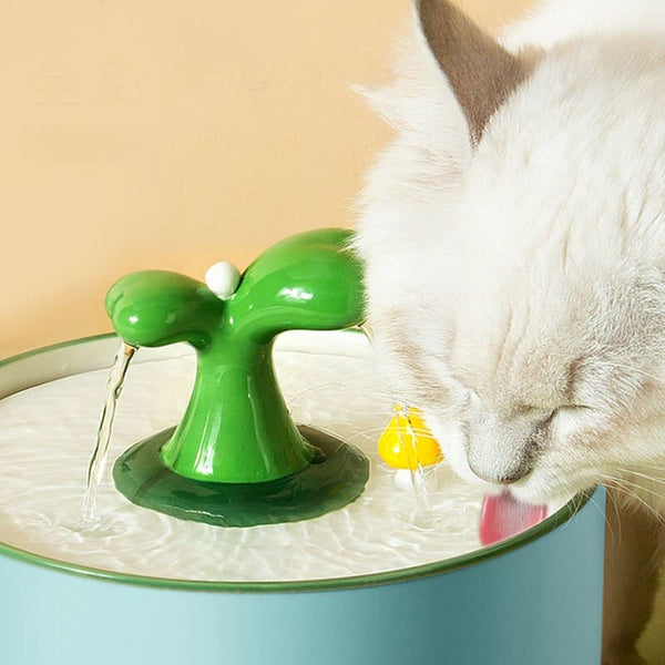 A muchos gatos y perros les encantan las fuentes de agua. Una fuente de agua en movimiento es mucho más atractiva que un abrevadero con agua estancada. Con su pequeña planta de cerámica verde que difunde continuamente chorros de agua y sus tonos pastel, ¡la fuente de cerámica para gatos realzará tu interior!