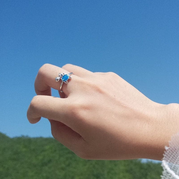 Acabada a mano, esta pieza está adornada con una circonita de color azul intenso. ¡El contraste de tonos azules y plateados combina de maravilla!