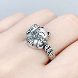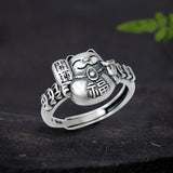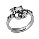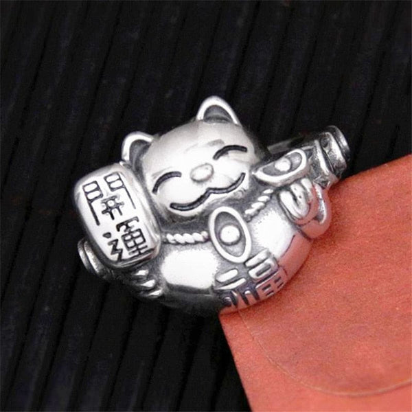 Trae suerte y fortuna con este anillo de plata con forma de gato Maneki-Neko finamente elaborado.