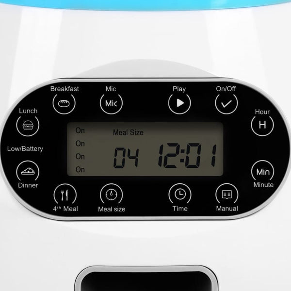 Con su pantalla LCD y su temporizador podrás programar hasta 4 platos al día con cantidades precisas de comida.