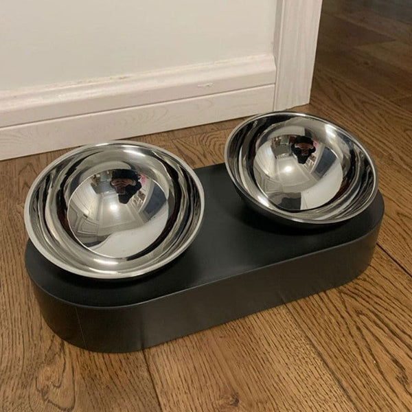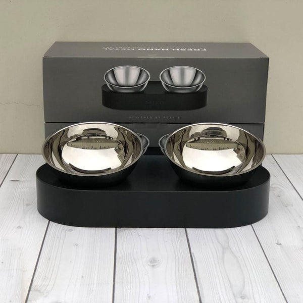 Este cuenco doble para gatos de diseño contemporáneo cuenta con 2 cuencos higiénicos de acero inoxidable, una excelente opción para la salud de sus perros y gatos.
