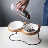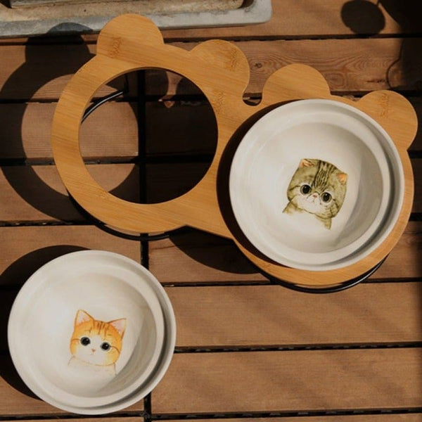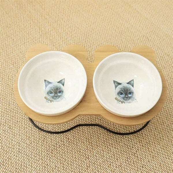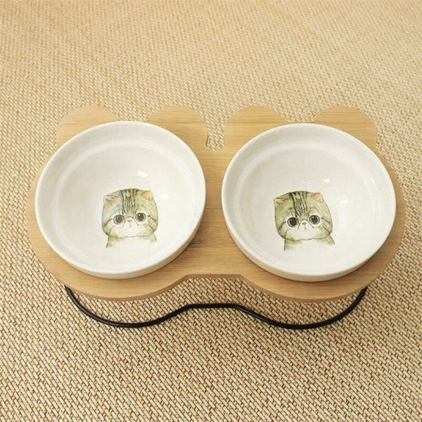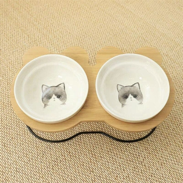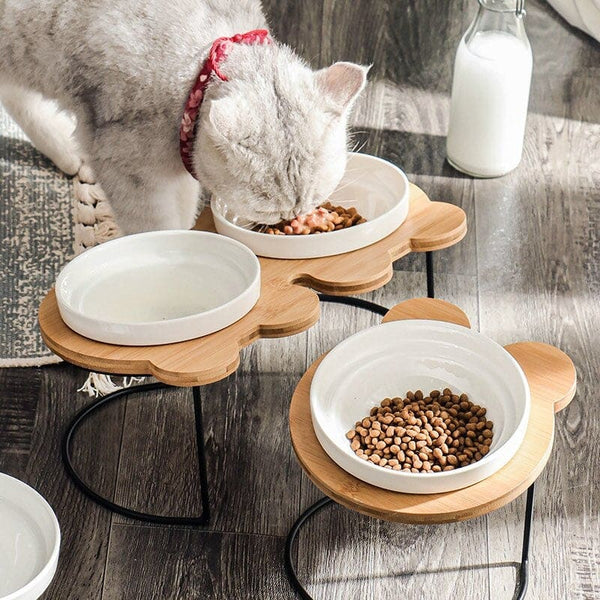 Compuesto por una estructura de metal y 2 cuencos de cerámica, tiene la ventaja de agrupar sobre un soporte de madera lo necesario para la alimentación de tu felino. ¡Dile adiós a los cuencos que “caminan” por tu casa!