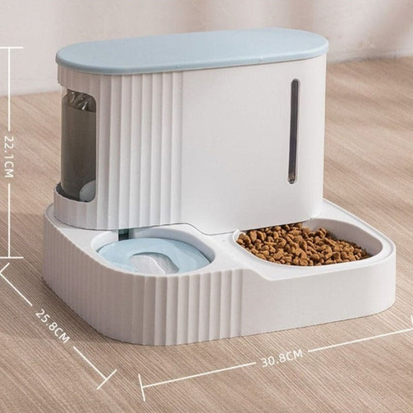Ce distributeur pour chat peut conserver jusqu'à 0.85 litres d'eau et 3 kilos de croquettes,.