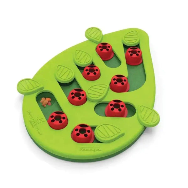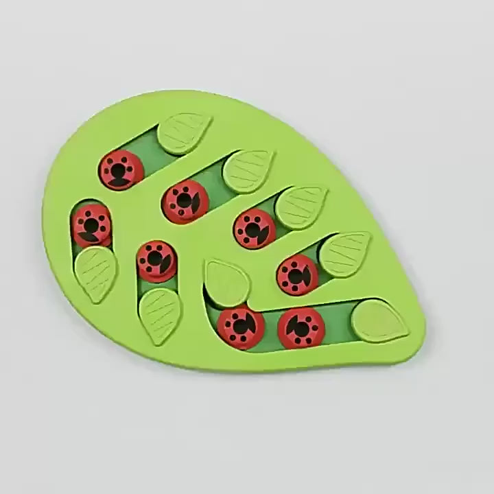 Design Amusant : Avec son esthétique inspirée des feuilles de palmier et ses petites cachettes imitant des coccinelles, ce jouet attire l'attention de votre chat tout en rendant l'heure des repas encore plus ludique.