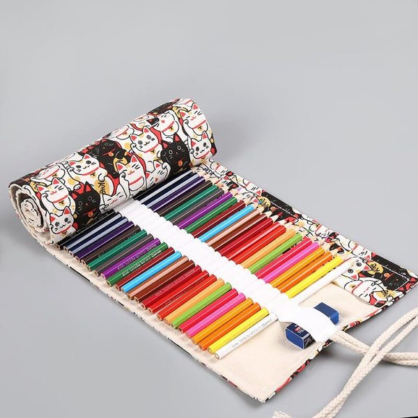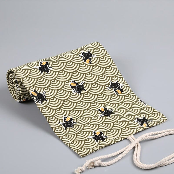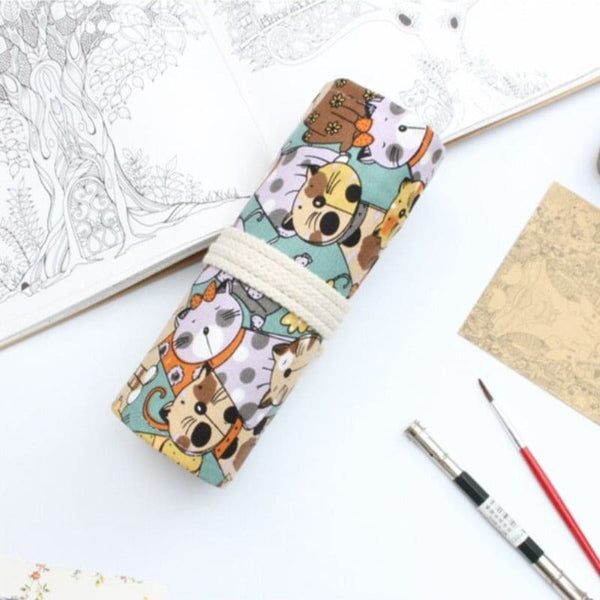 Désormais, vous pouvez enrouler votre pochette à crayon chat en toile ultra pratique et compacte : un kit fonctionnel, facilement transportable et qui prend peu de place dans votre sac !