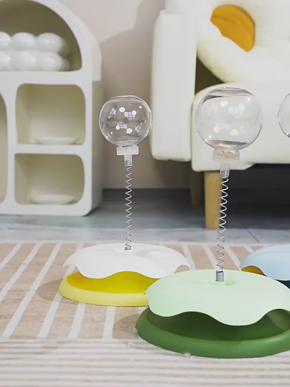 Design Innovant : Le jouet est constitué d'un circuit de balles intégré dans un socle surmonté d'un ressort, qui maintient une sphère transparente. Cette sphère permet de voir les friandises et croquettes à l'intérieur, éveillant l'instinct de chasse de votre chat.