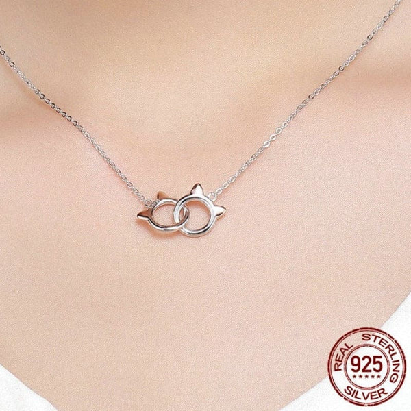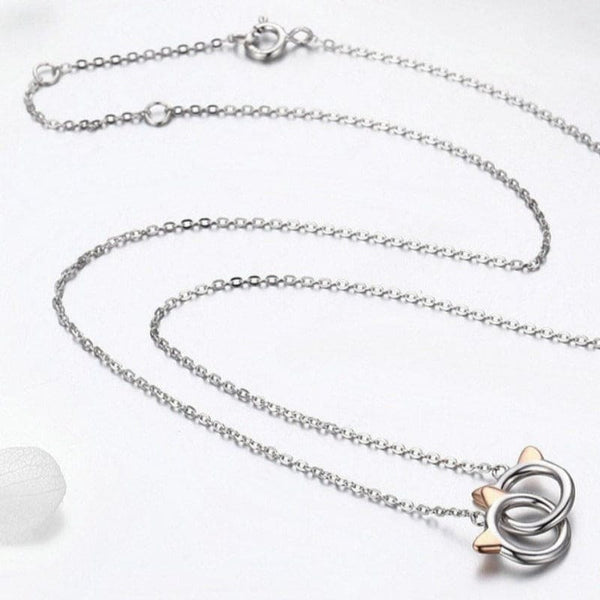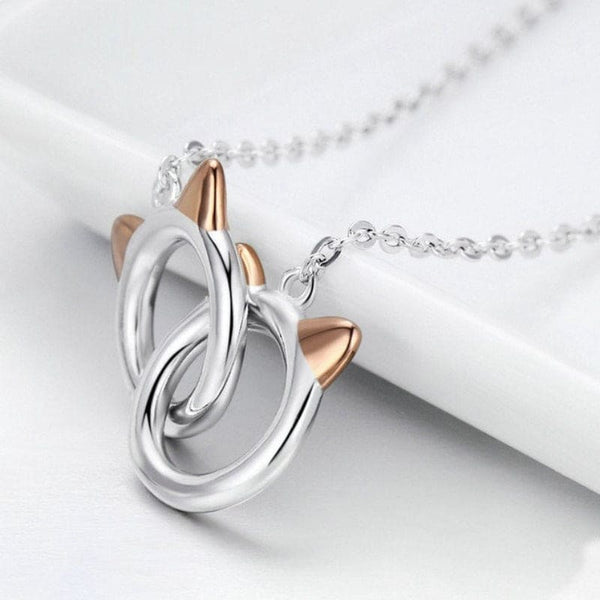 Pour les femmes qui apprécient les félins mais aiment les bijoux précieux raffinés, ce collier en argent est l'occasion de révéler votre amour pour la race féline sans être trop démonstratif. Certes, il s'agit de deux jolis anneaux en forme de tête de chat entrelacés qui portent chacun une paire d'oreilles dorée du plus bel effet.